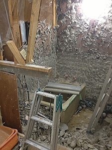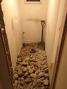 タイルのお風呂からユニットバスにする工事だったので、壁・床部分のタイルを解体です。