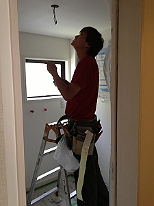 ユニットバスの施工後クロスや電気の工事をしています