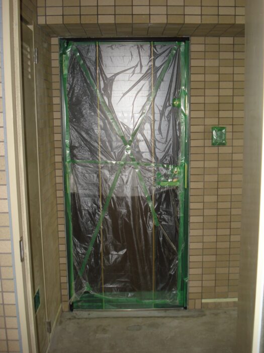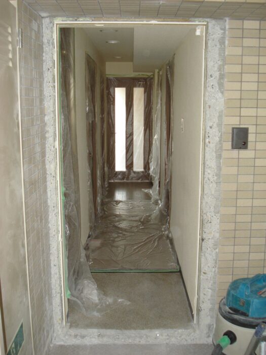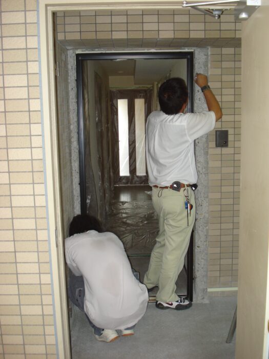 仮にできたとしても、マンションなのでドアが小さくなるなど他部屋との違いが出ることは避けたいとのオーナー様ご判断で枠ごと交換の工事となりました。
