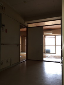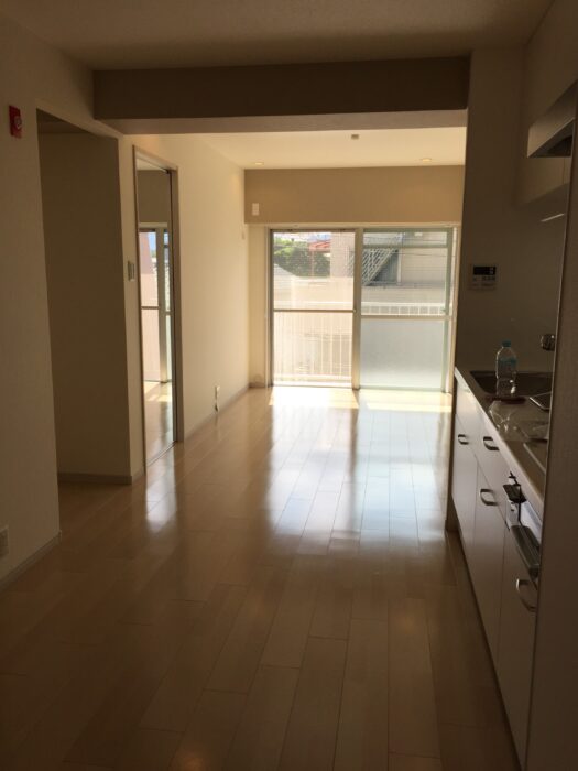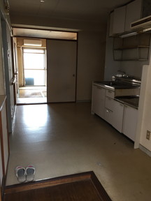 リビングから玄関 ※内玄関がなく、玄関扉を変えるとすぐにLDKが見える状態でした。