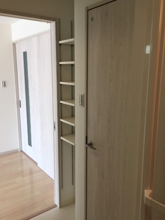 さらにトイレ横のスペースにも棚板
