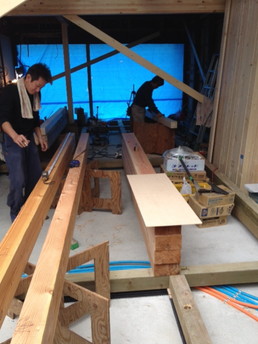 解体の後、最初に基礎がなかったので、基礎造り、一部梁の補強と柱の組み替えもします。