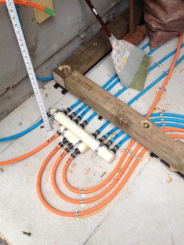 補強工事が終わりました、新しくした室内の配管類もヘッダー方式というつなぎ目を1箇所に集めて将来のメンテナンスに備えた形にしています