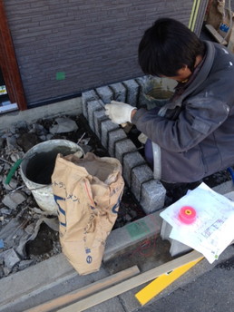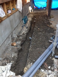 玄関前や裏の土間などの外構部分の工事です。